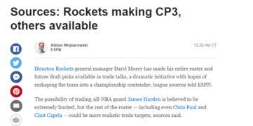 沃神最新爆料:火箭交易风云再起